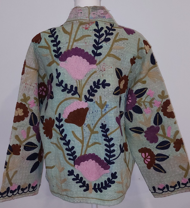 Veste en Kantha recyclé - Kimono réversible - Brodé Suzani - Confectionné à la main - Pièce unique