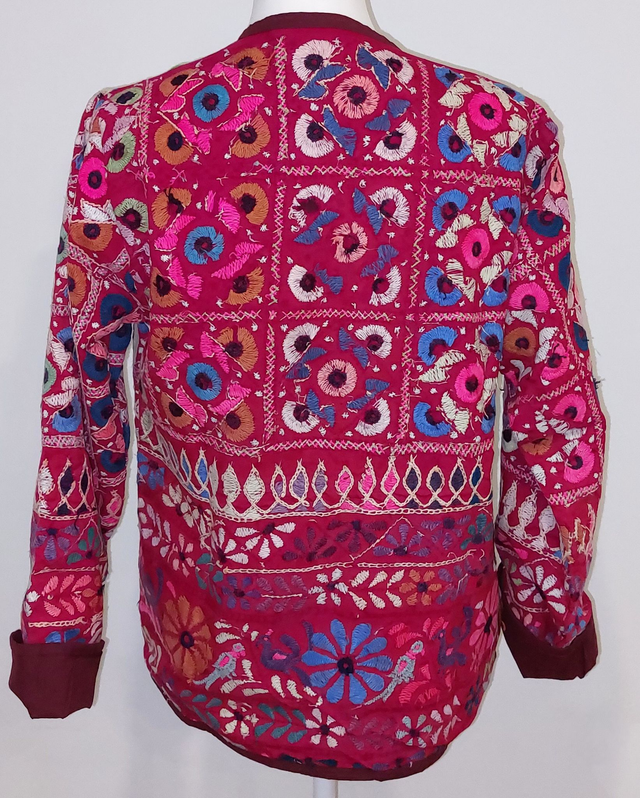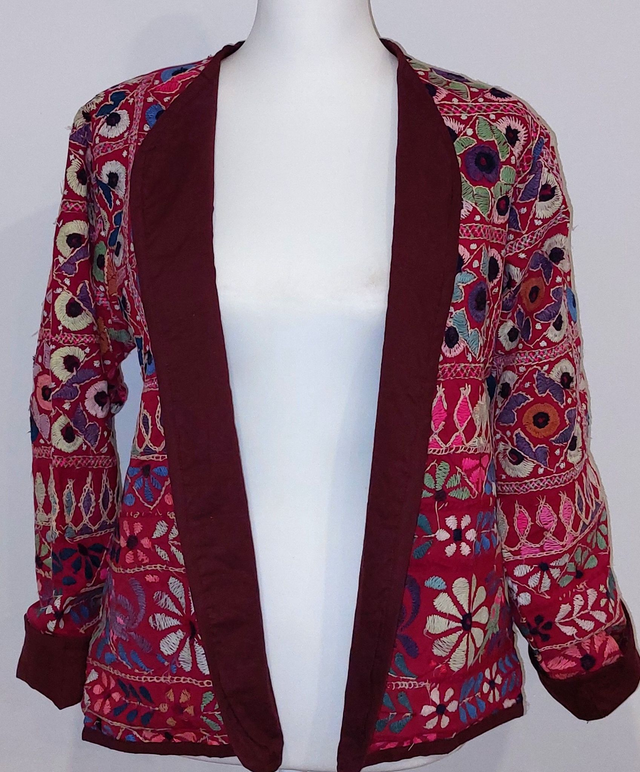 Veste femme reversible coton brodé recyclé - Unique - Confectionnée à la main dans les villages Indiens - Rouge
