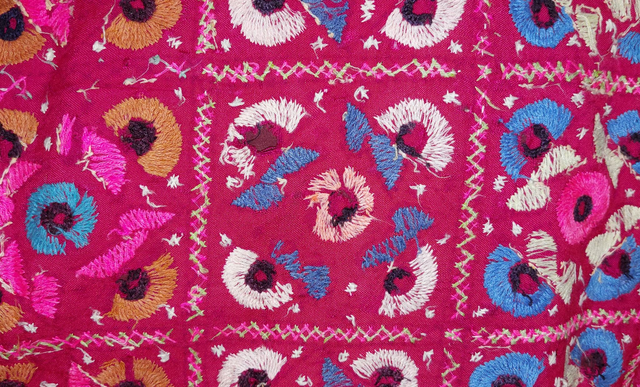 Veste réversible et unique en coton brodé recyclé brodé. Confectionnée à la main, cette veste artisanale est à la fois unique et écoresponsable. Elle est fabriquée à partir de jupes des Rabaris, un peuple de l'Inde nomadisant principalement au Gujarat et au Rajasthan. Cette veste légère et éthique reflète un savoir-faire authentique et une attention particulière aux détails. Idéal pour un look bohème chic en toute saison.